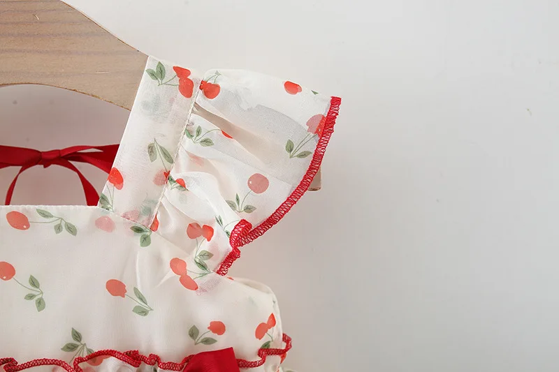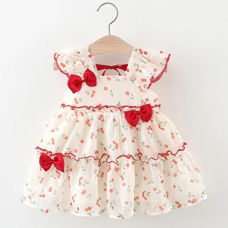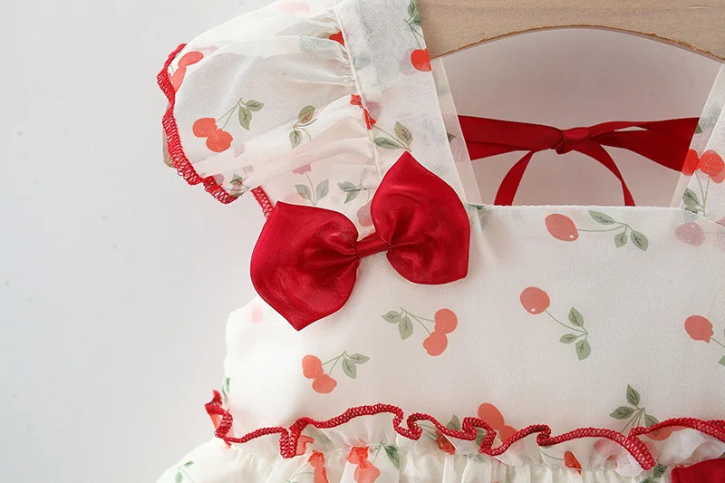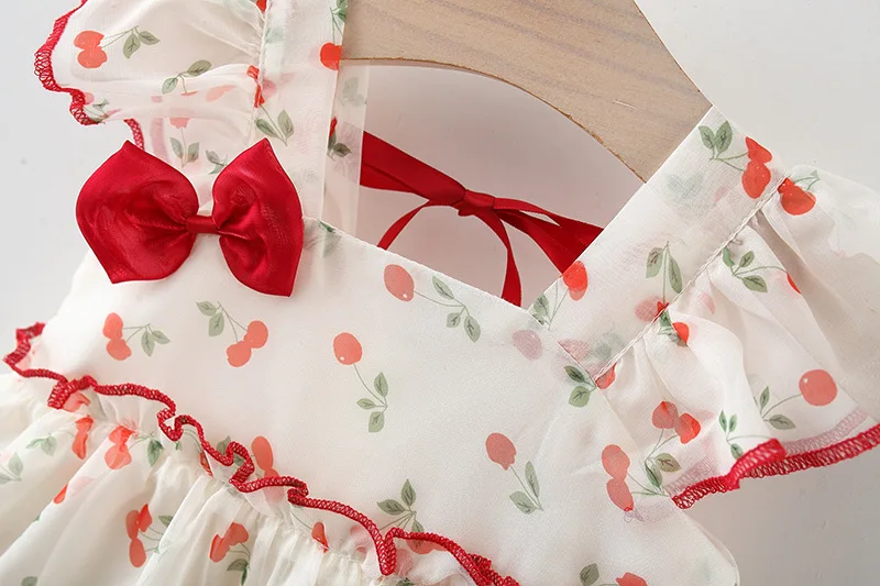 Baby 0-4 Years Old Summer New Sweet and Cute Bow Dress Dress Cherry Chiffon Skirt Girl Thousands of Net Gauze Idyllic Skirt