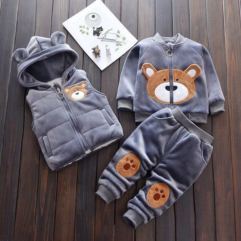 Baby Boy Warm Sets Kids Winter Jackets+Pants 3Pcs Outfits Children Autumn Hooded Suits Girls Casual Fashion Fleece Clothes